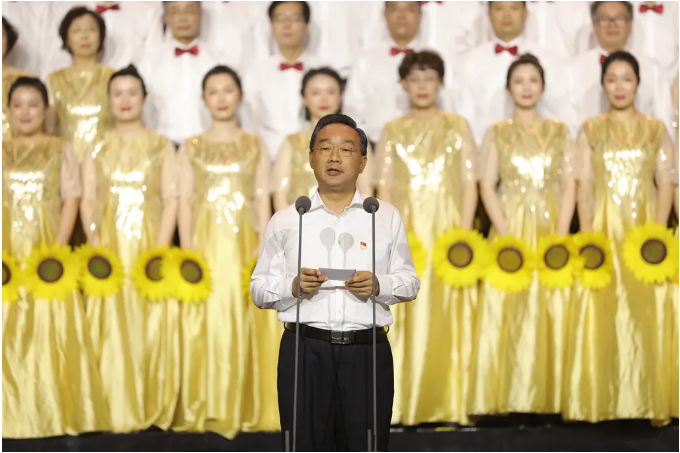 农业农村部领导与干部职工一起演唱《没有共产党就没有新中国》,将歌咏大会气氛推向高潮。农业农村部系统59个司局单位共1500多名干部职工,表演了《南泥湾》《唱支山歌给党听》《我和我的祖国》《丰收中国》等20个节目,共同唱响百年红色旋律,歌颂百年光辉历程,表达对党的忠诚热爱,为党的百年华诞送上真诚祝福。